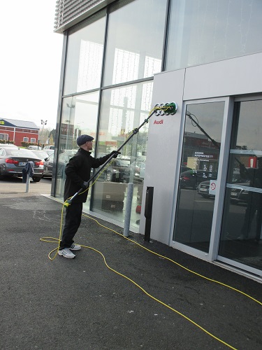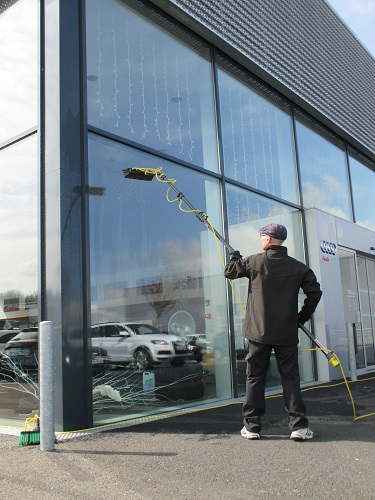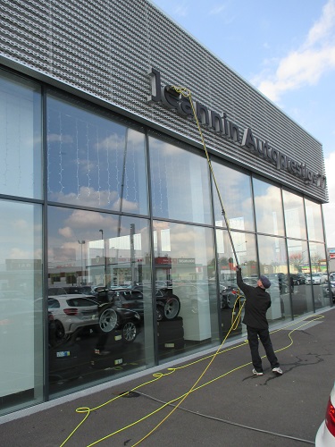 Grâce aux perches téléscopiques en carbone, nettoyage possible de parties difficilement accessibles jusqu'à 20 mètres de haut.